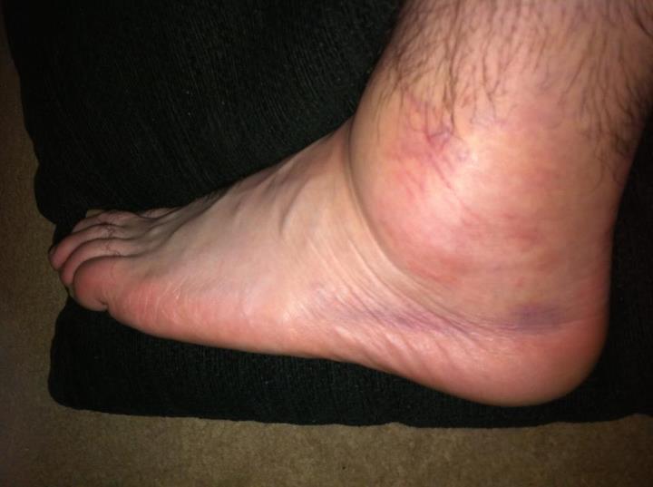 Playing rugby for Ashbourne 3XV versus Kegworth, I turn my left ankle in the first half. I continue playing as I am enjoying taunting the full back who was getting above his station as it was apparently his 18th birthday. I eventually give in and come off in the second half. No swelling as such, just a little sore.