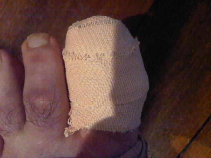 Back in Redditch, I take myself to A&E at the Alexandra. Any complaints I may have had about Derby hospital are forgotten as this place is shocking!! I was expecting a few hours wait but in the end they kept me waiting for over 30 hours, just to bandage me up. They even lost the toe nail that they were going to use to protect my toe as the new one grew back. I also find out that my toe is broken.