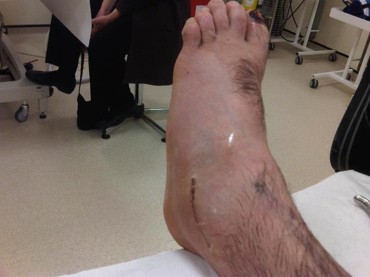 An operation on a Sunday? Must be trying to cut the waiting lists. I needed to get the train up to Derby as I obviously will not be able to drive back home afterwards. Unfortunately, I had to report to the ward at 7am and so had to come up the previous night and stay in a hotel. Back in Derby on a Saturday night and I can’t go and have a drink!! Sat in the ward I was feeling quite good. The guy opposite was having a full hip replacement which put my poxy ligaments into perspective. In fact, I was looking forward to the anaesthetic and having a good kip. After the drawn out process to get this far, the hospital staff on the day were superb. I was back in Redditch with my feet up in front of the telly by 4pm. The cast needs to be on for 6 weeks.